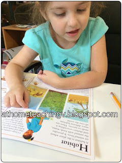 As mentioned before, we finish the week with a quiz that I developed based on the one from the Expedition Earth Curriculum, but because I want her to focus on answering the questions rather than on how to spell the words, I make each week a multiple choice quiz for her.